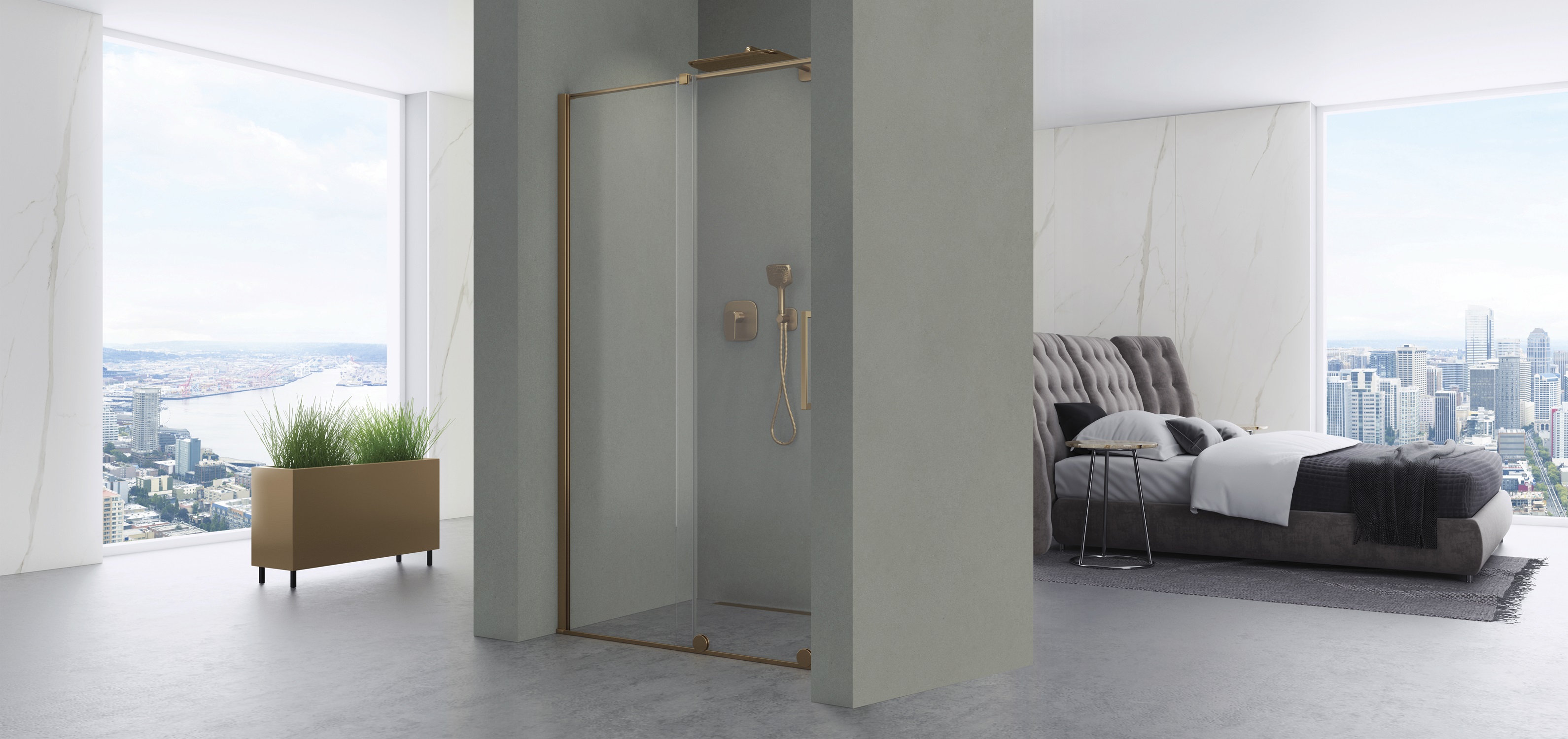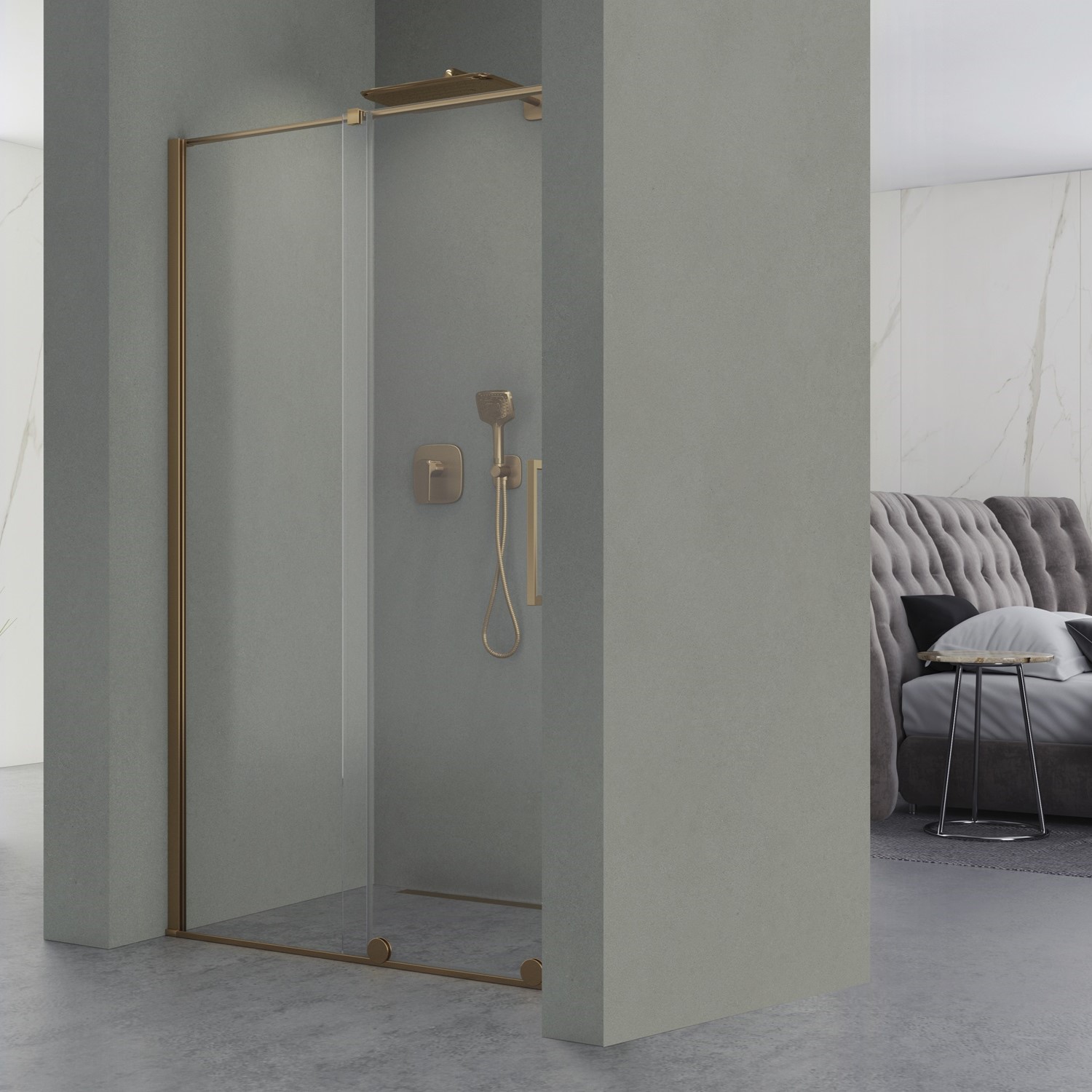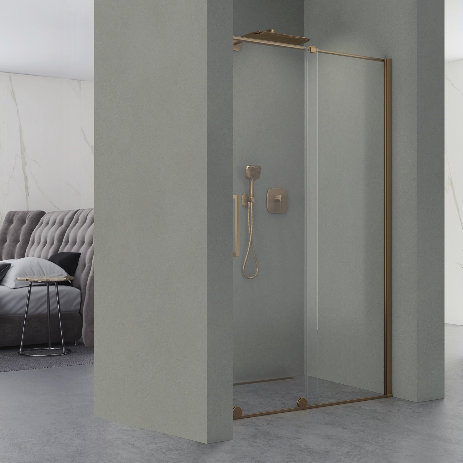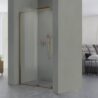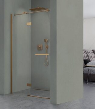 Drzwi wnękowe Etna 2.0 Brush Yellow Titanium to istota nowoczesnego designu, charakteryzująca się drzwiami przesuwnymi z eleganckimi kółkami podkreślającymi unikalny wygląd każdego wnętrza. Drzwi wykonane są z bezpiecznego hartowanego szkła o grubości 8 mm pokrytego obustronnie powłoką NANOGLASS, która ułatwia utrzymanie kabiny w idealnej czystości. Drzwi znajdują zastosowanie w mniejszych łazienkach nie zmniejszając funkcjonalności pomieszczenia oraz komfortu użytkowania. Drzwi są uniwersalne, kierunek otwierania drzwi jest dostosowywany podczas montażu, drzwi można montować zarówno na brodziku jak i bezpośrednio na posadzce. Zastosowany profil uszczelniający umożliwia niwelację krzywizny ściany do 30 mm.