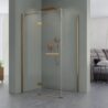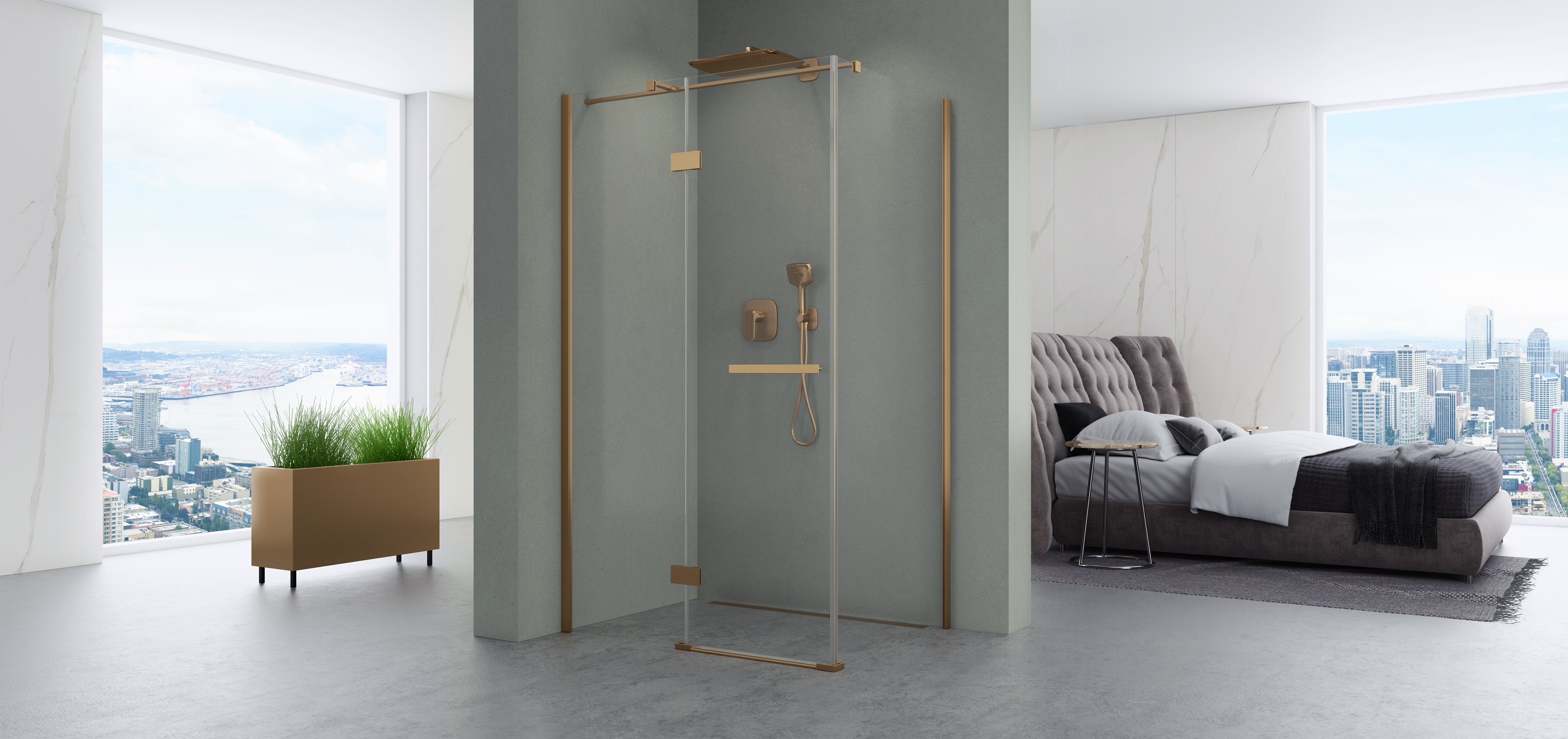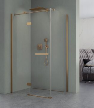 Kabina prysznicowa Catania 2.o Brush Yellow Titanium uosabia koncepcję eleganckiego wnętrza. Cechują ją delikatne linie z akcentami w postaci zakrytych zawiasów w kształcie prostokąta oraz dużej i praktycznej rączce. Kabina ma kształt prostokąta, wykonana jest z bezpiecznego hartowanego szkła o grubości 8mm pokrytego powłoką NANOGLASS, która ułatwia utrzymanie kabiny w idealnej czystości. Kabina posiada możliwość wyboru szerokości oraz głębokości dzięki czemu mamy możliwość kompletowania kabiny pod indywidualne potrzeby. Kabina jest uniwersalna, kierunek otwierania drzwi jest dostosowywany podczas montażu, kabinę można montować zarówno na brodziku jak i bezpośrednio na posadzce. Zastosowany profil uszczelniający umożliwia niwelację krzywizny ściany do 20 mm