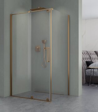 Kabina prysznicowa Toskania 2.0 Brush Yellow Titanium to istota nowoczesnego designu, charakteryzująca się drzwiami przesuwnymi z eleganckimi kółkami podkreślającymi unikalny wygląd każdego wnętrza. Kabina wykonana jest z bezpiecznego hartowanego szkła o grubości 8 mm pokrytego obustronnie powłoką NANOGLASS, która ułatwia utrzymanie kabiny w idealnej czystości. Kabina znajduje zastosowanie w mniejszych łazienkach nie zmniejszając funkcjonalności pomieszczenia oraz komfortu użytkowania. Kabina jest uniwersalna, kierunek otwierania drzwi kabiny jest dostosowywany podczas montażu, kabinę można montować zarówno na brodziku jak i bezpośrednio na posadzce. Zastosowany profil uszczelniający umożliwia niwelację krzywizny ściany do 20 mm.