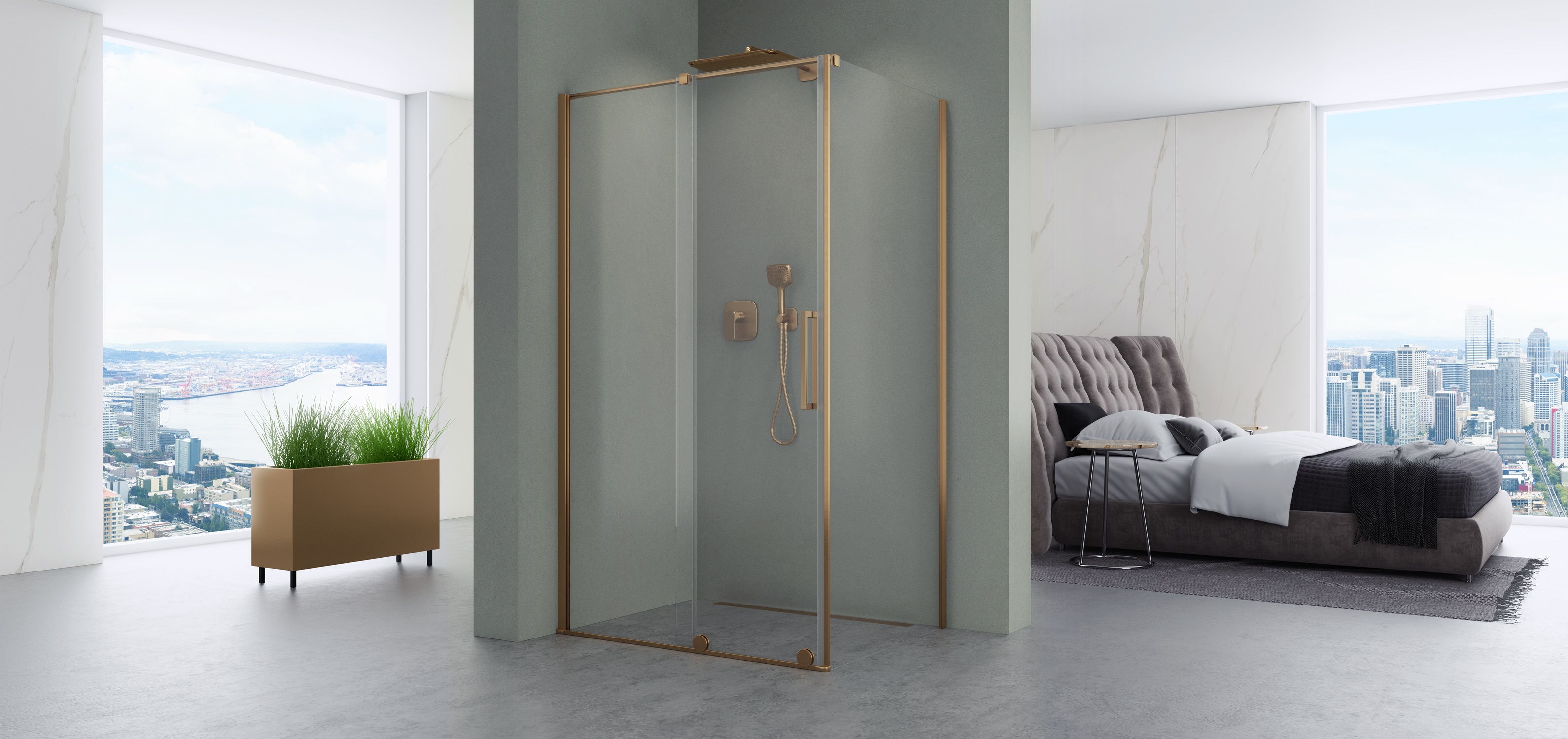 Kabina prysznicowa Toskania 2.0 Brush Yellow Titanium to istota nowoczesnego designu, charakteryzująca się drzwiami przesuwnymi z eleganckimi kółkami podkreślającymi unikalny wygląd każdego wnętrza. Kabina wykonana jest z bezpiecznego hartowanego szkła o grubości 8 mm pokrytego obustronnie powłoką NANOGLASS, która ułatwia utrzymanie kabiny w idealnej czystości. Kabina znajduje zastosowanie w mniejszych łazienkach nie zmniejszając funkcjonalności pomieszczenia oraz komfortu użytkowania. Kabina jest uniwersalna, kierunek otwierania drzwi kabiny jest dostosowywany podczas montażu, kabinę można montować zarówno na brodziku jak i bezpośrednio na posadzce. Zastosowany profil uszczelniający umożliwia niwelację krzywizny ściany do 20 mm.